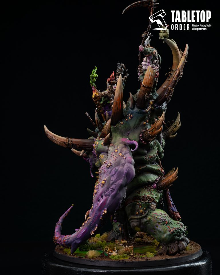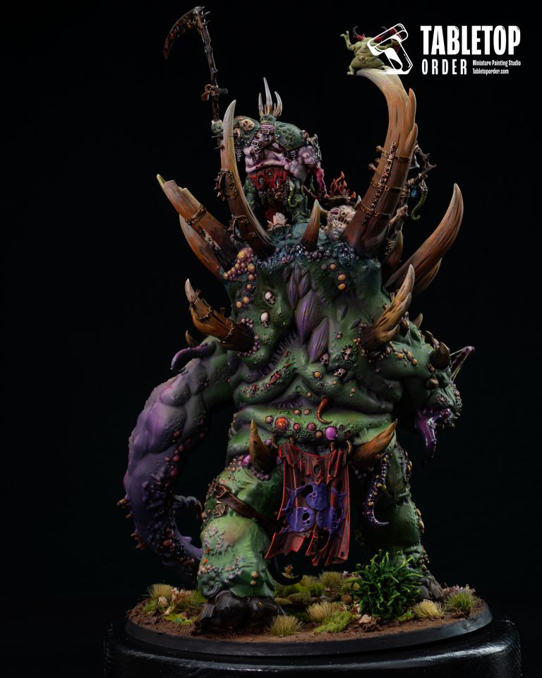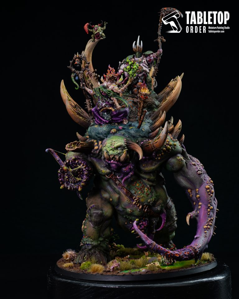 This high-contrast approach to the basing style is essential for such a large model, as it provides a narrative foundation that ties the Glottkin into the lore of the Mortal Realms. For any commission painted army, having a centerpiece with this level of environmental detail ensures a professional and immersive look that captures the essence of the Nurgle [faction].