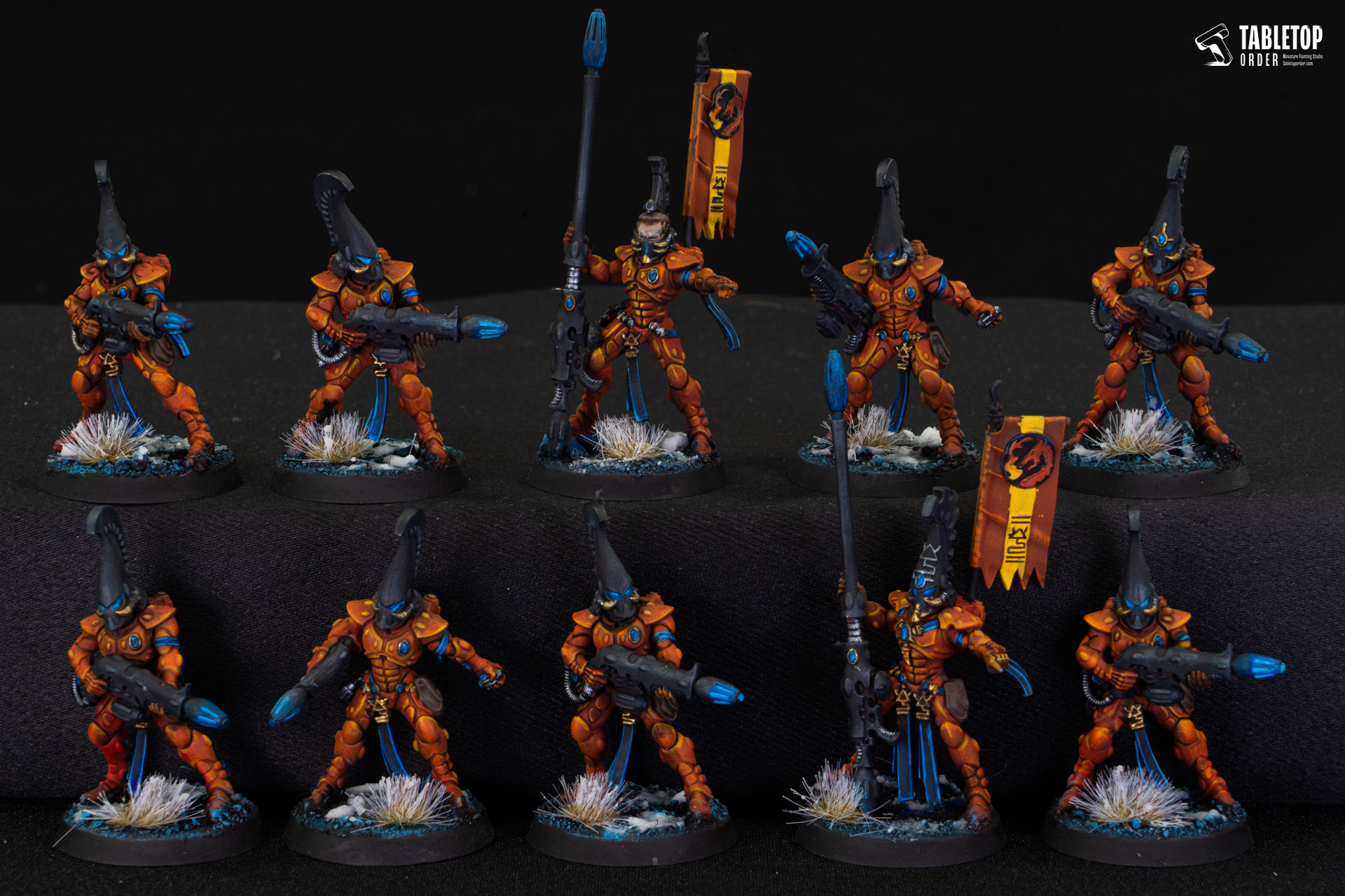 This warm palette serves as a perfect visual counterpoint to the cool teals of the Swooping Hawks, ensuring each unit is easily identifiable during gameplay.