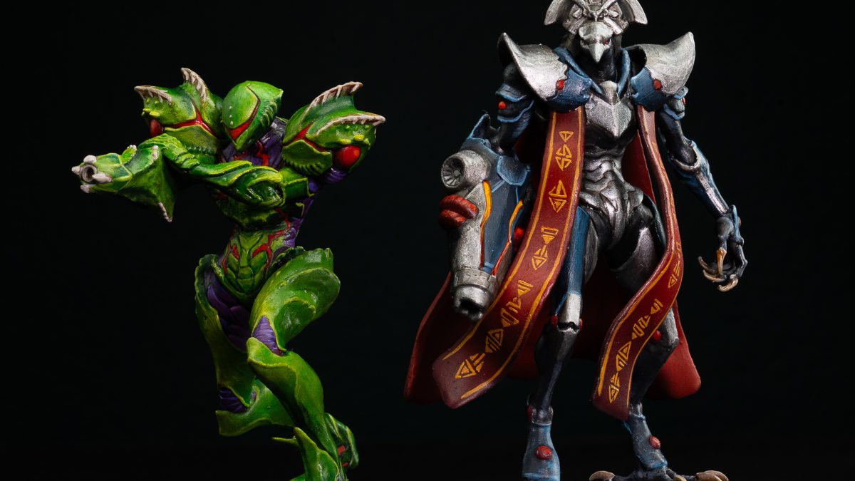 This custom painted Metroid miniature set captures the intense rivalry between Samus Aran and the formidable Raven Beak from Metroid Dread.
