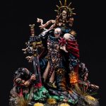 Individual details such as stitches, exposed bone, and damaged armor plates were carefully highlighted to maintain strong contrast at tabletop distance.