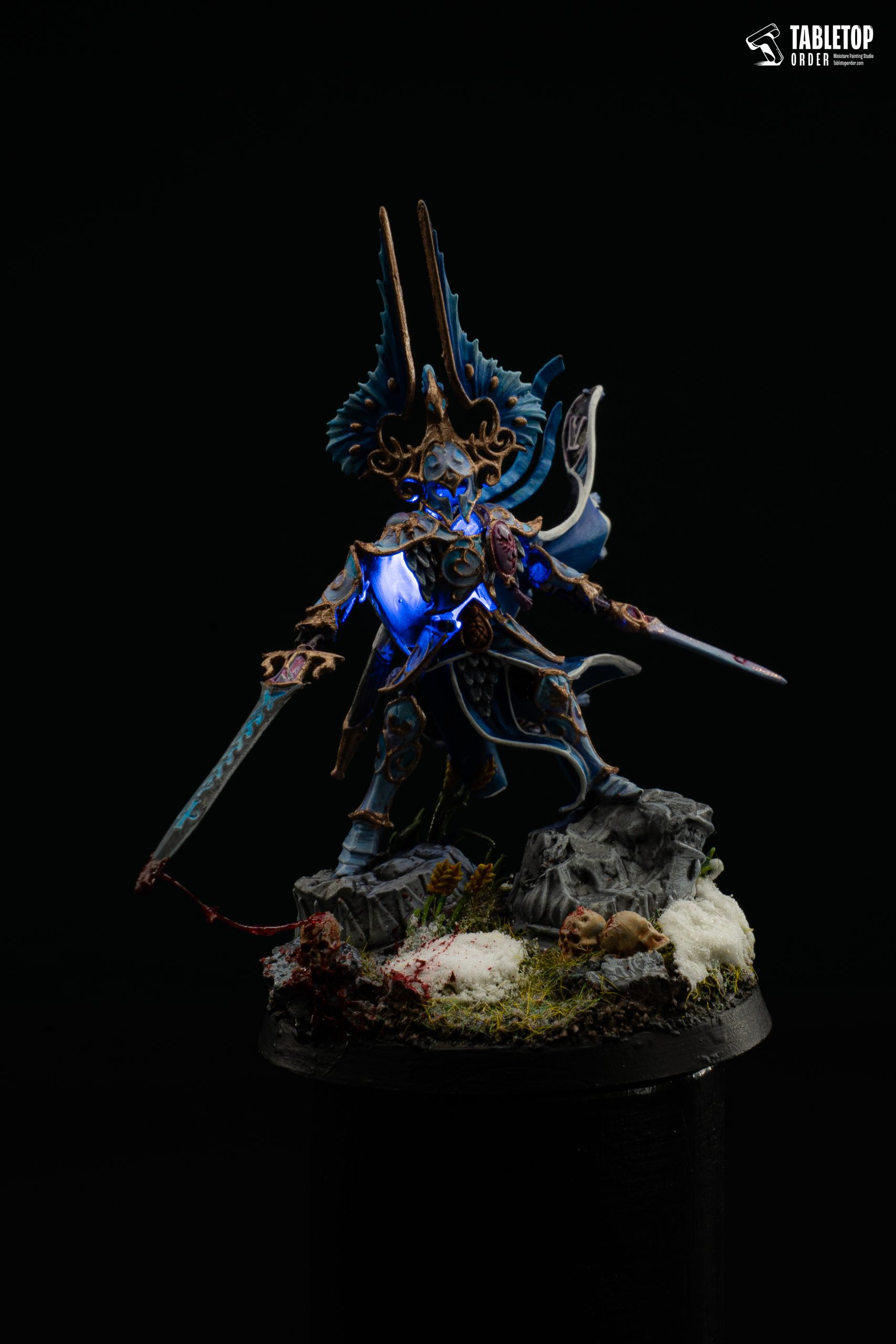 As one of the most unique models in Warhammer Age of Sigmar, the goal for this commission painting project was to emphasize the magical energy holding the armor together while maintaining a regal, high-fantasy aesthetic.
